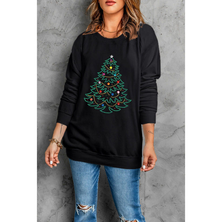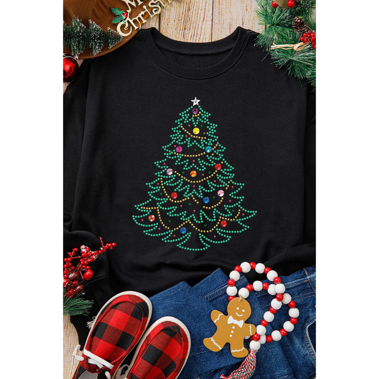 - Black Rhinestone Christmas Tree Graphic Pullover Sweatshirt