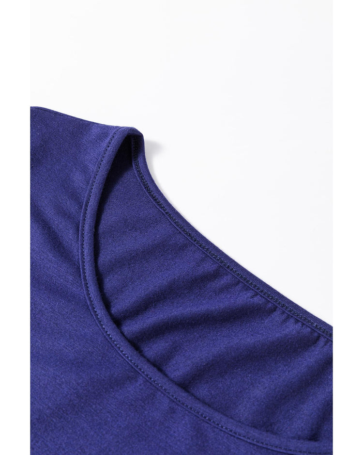 Blue Solid Top and Christmas Pants Two Piece Lounge Set - XL