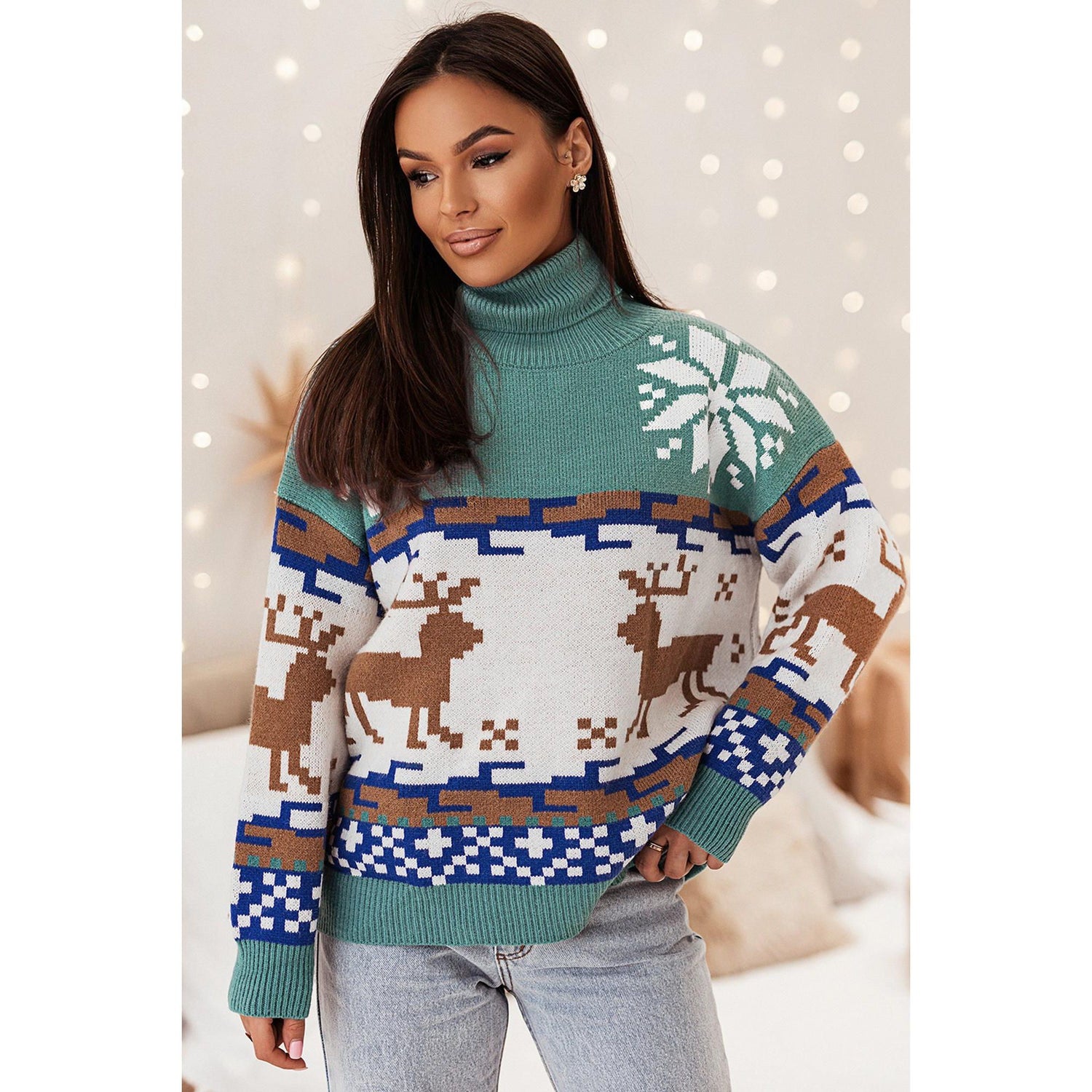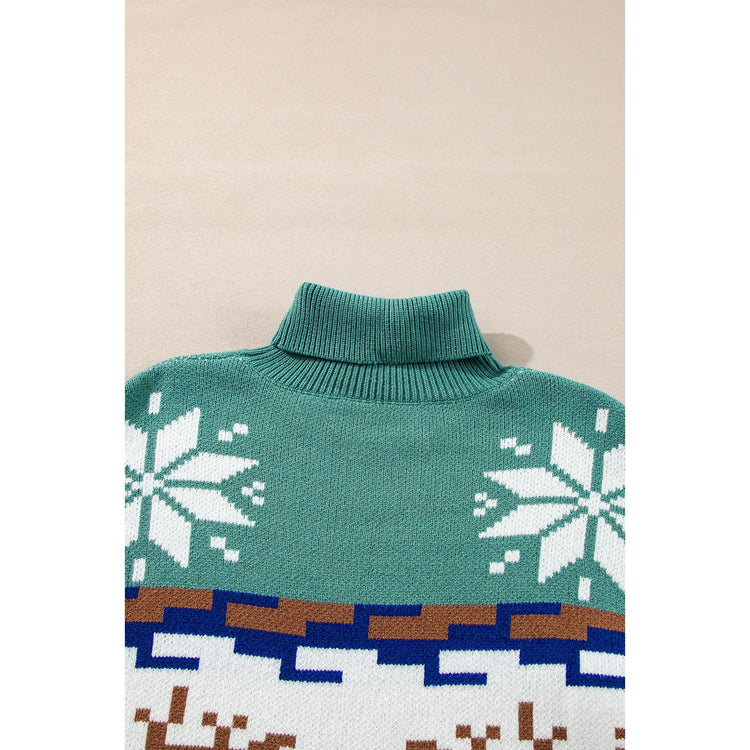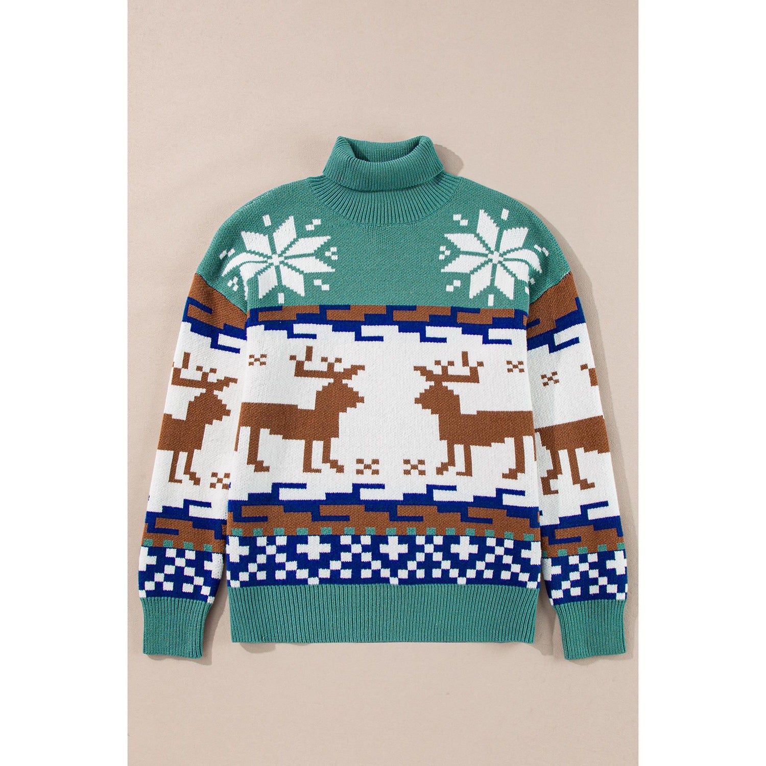 Canton Christmas Reindeer Snowflake Colorblock Turtleneck Sweater - S