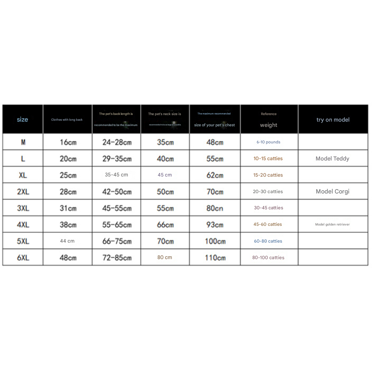 To ensure the perfect fit for your furry companion, please measure your dog's back length, chest girth, and neck girth as indicated in our sizing chart image. Compare these measurements to the chart to select the most appropriate size. If your dog is between sizes, we generally recommend opting for the larger size.