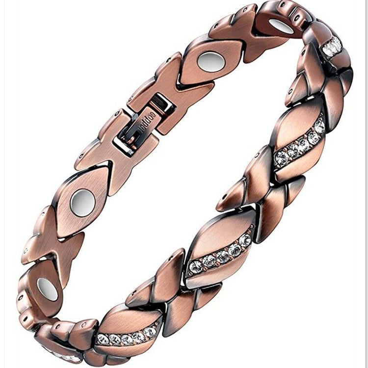 Stylish Ancient Copper Magnetic Therapy Bracelet with Diamond Accents - Enhance Health Elegance