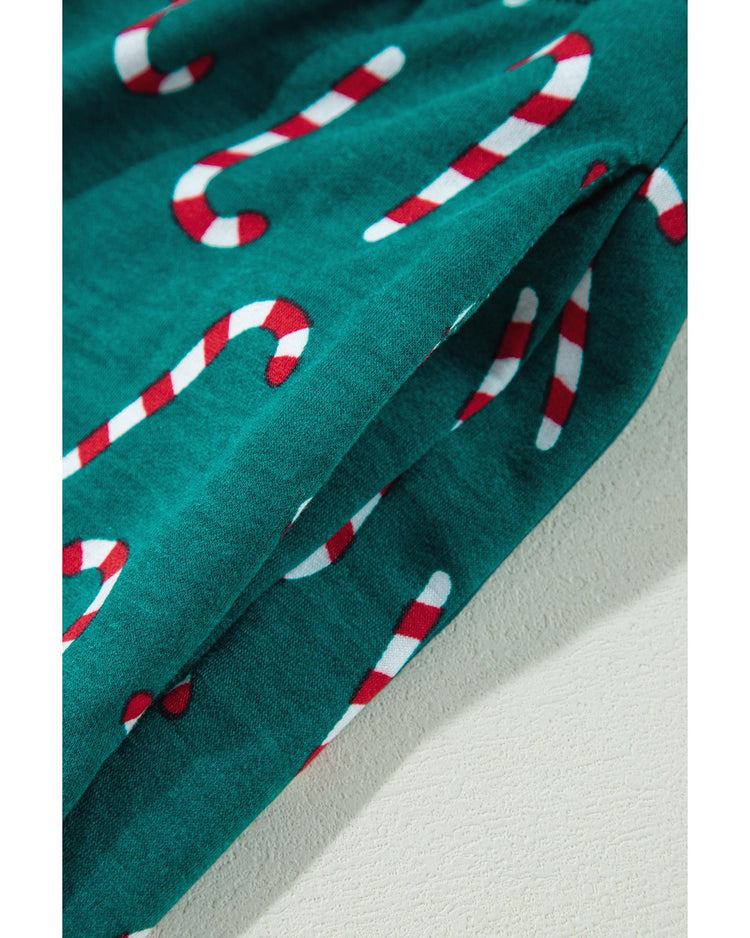Green Christmas Candy Cane Printed Top and Pants Lounge Set - L