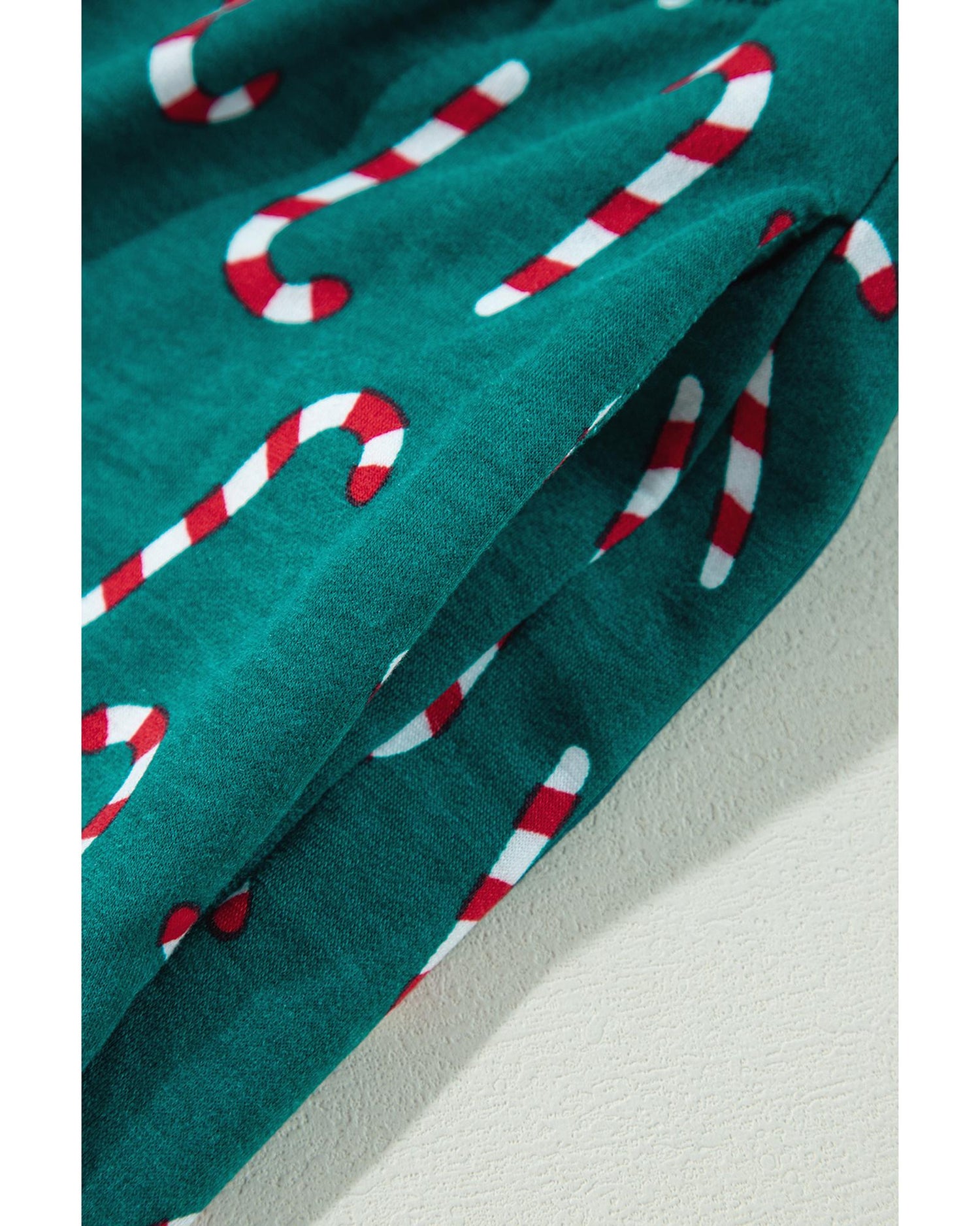 Green Christmas Candy Cane Printed Top and Pants Lounge Set - XL