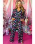 - Navy Blue Colorful Christmas Lights Print Shirt and Pants Pajama Set