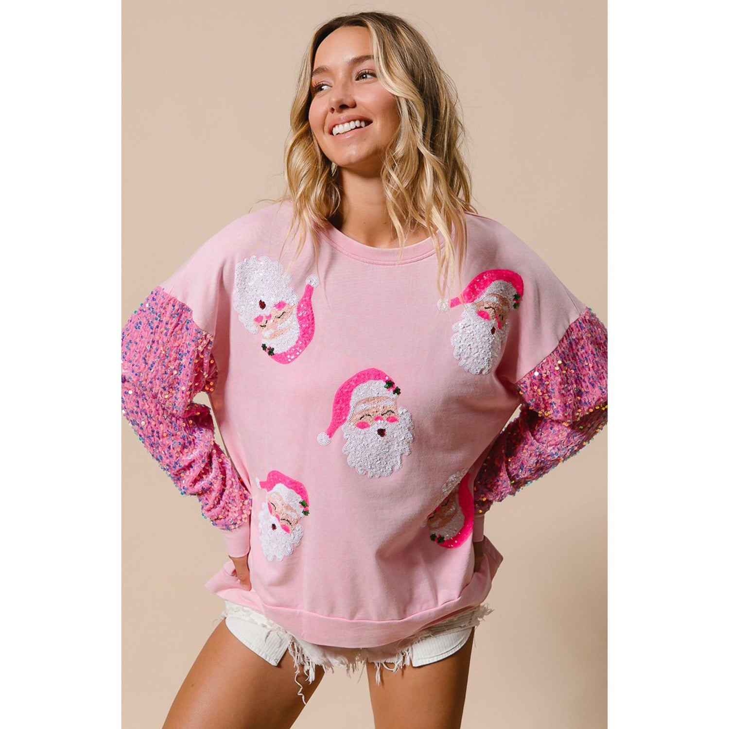 Pink Sequined Santa Claus Long Sleeve Christmas Sweatshirt - L