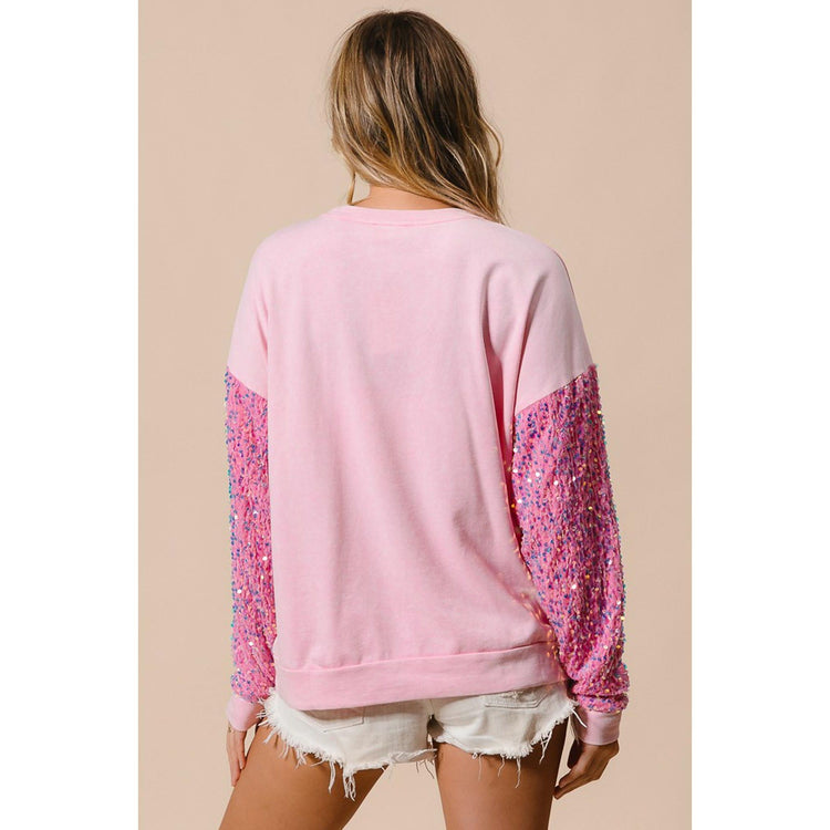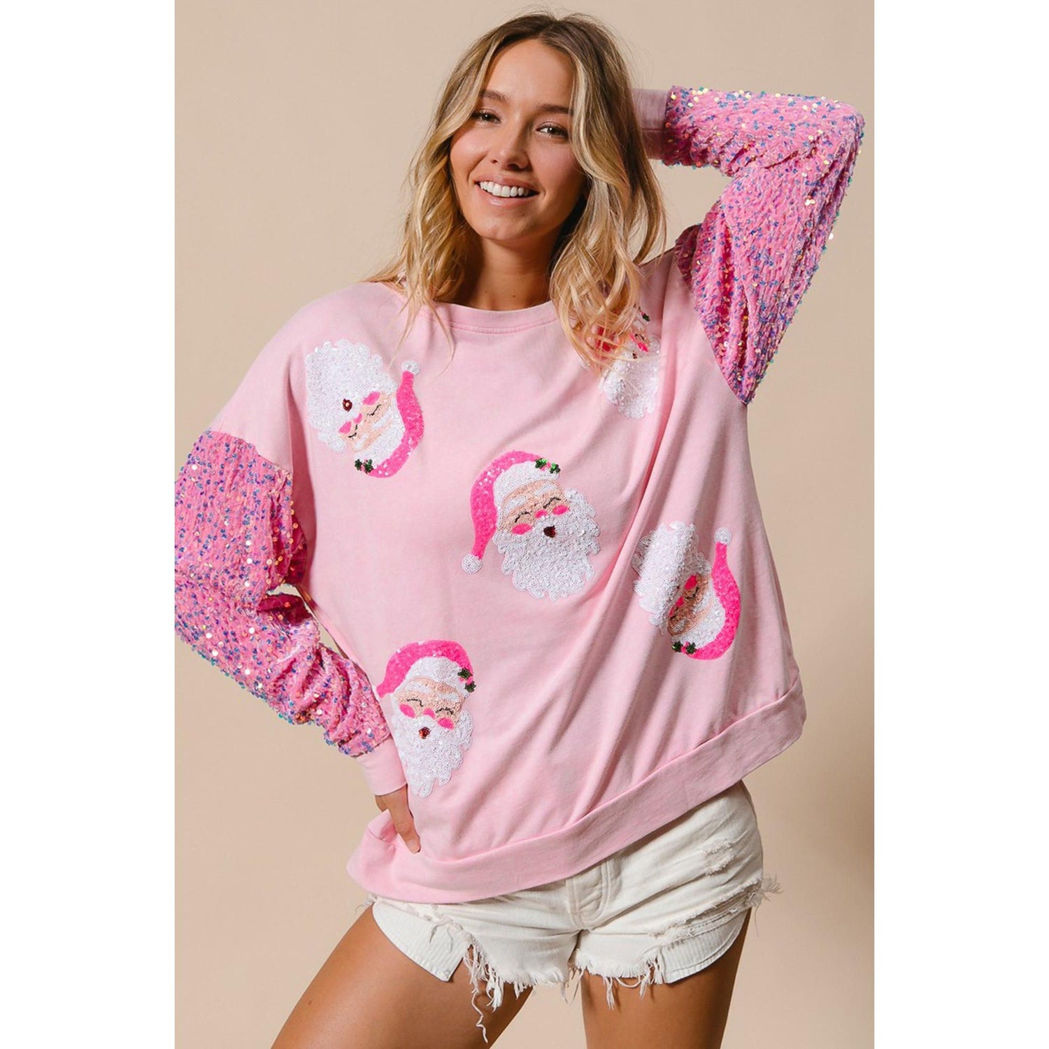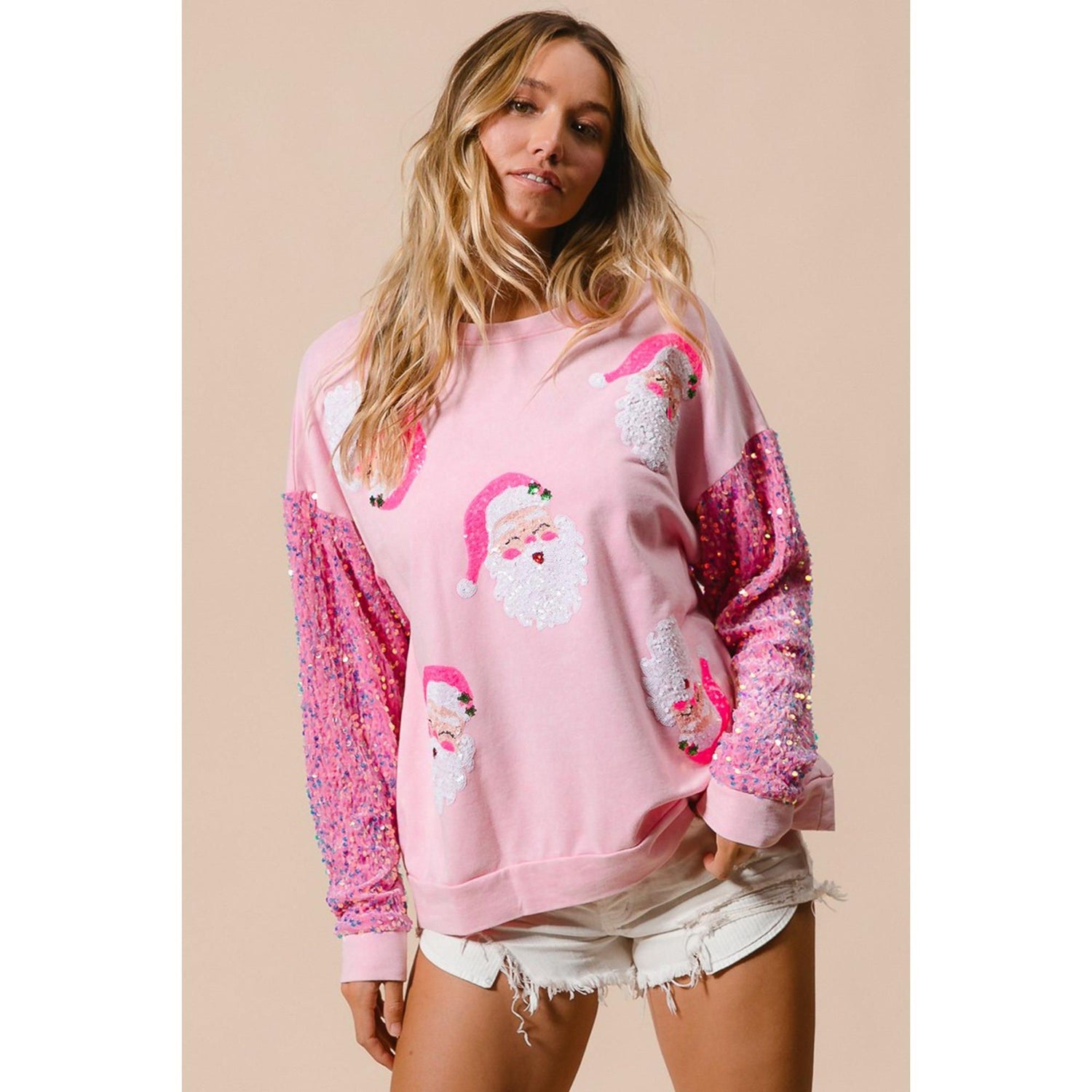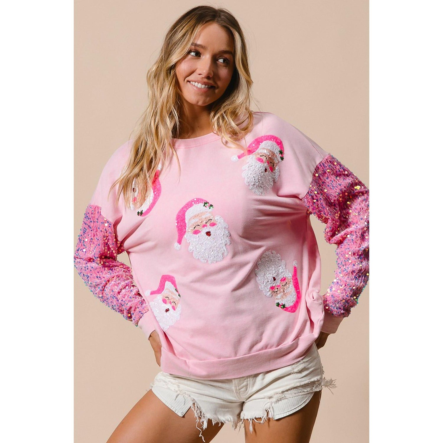 Pink Sequined Santa Claus Long Sleeve Christmas Sweatshirt - S