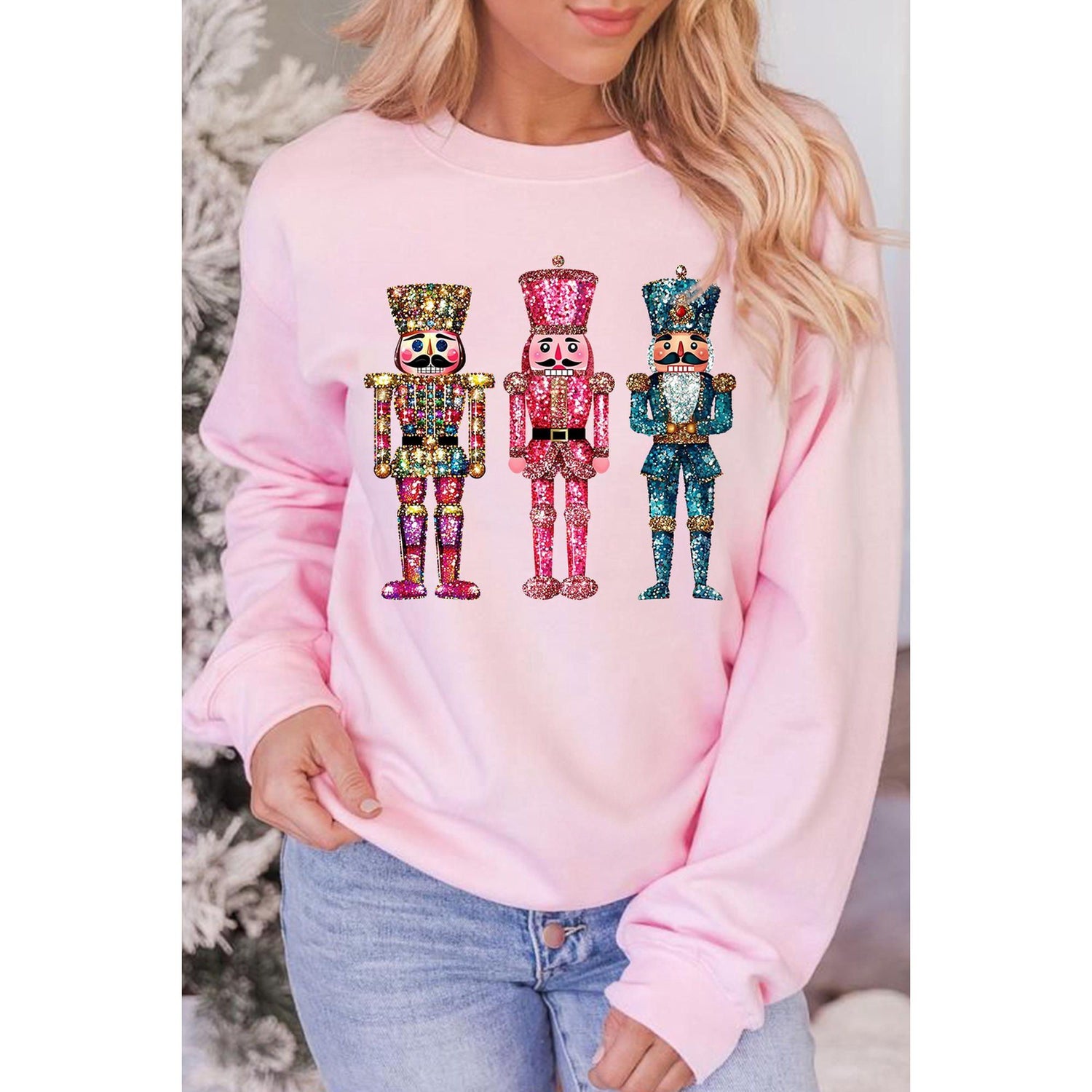 Pink Shimmer Nutcracker Graphic Christmas Pullover Sweatshirt - S