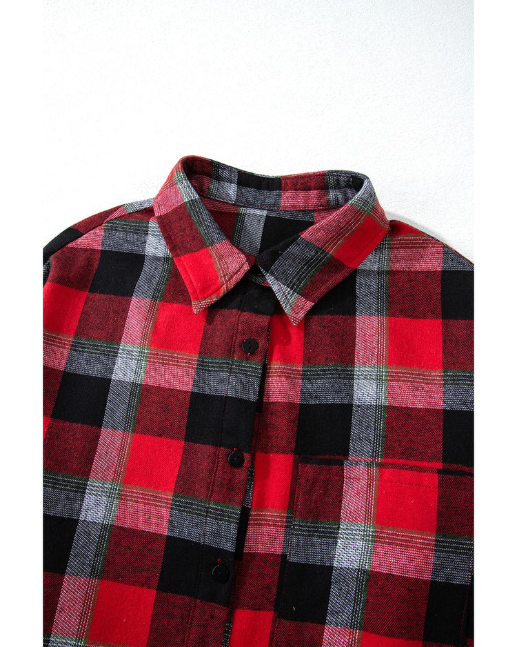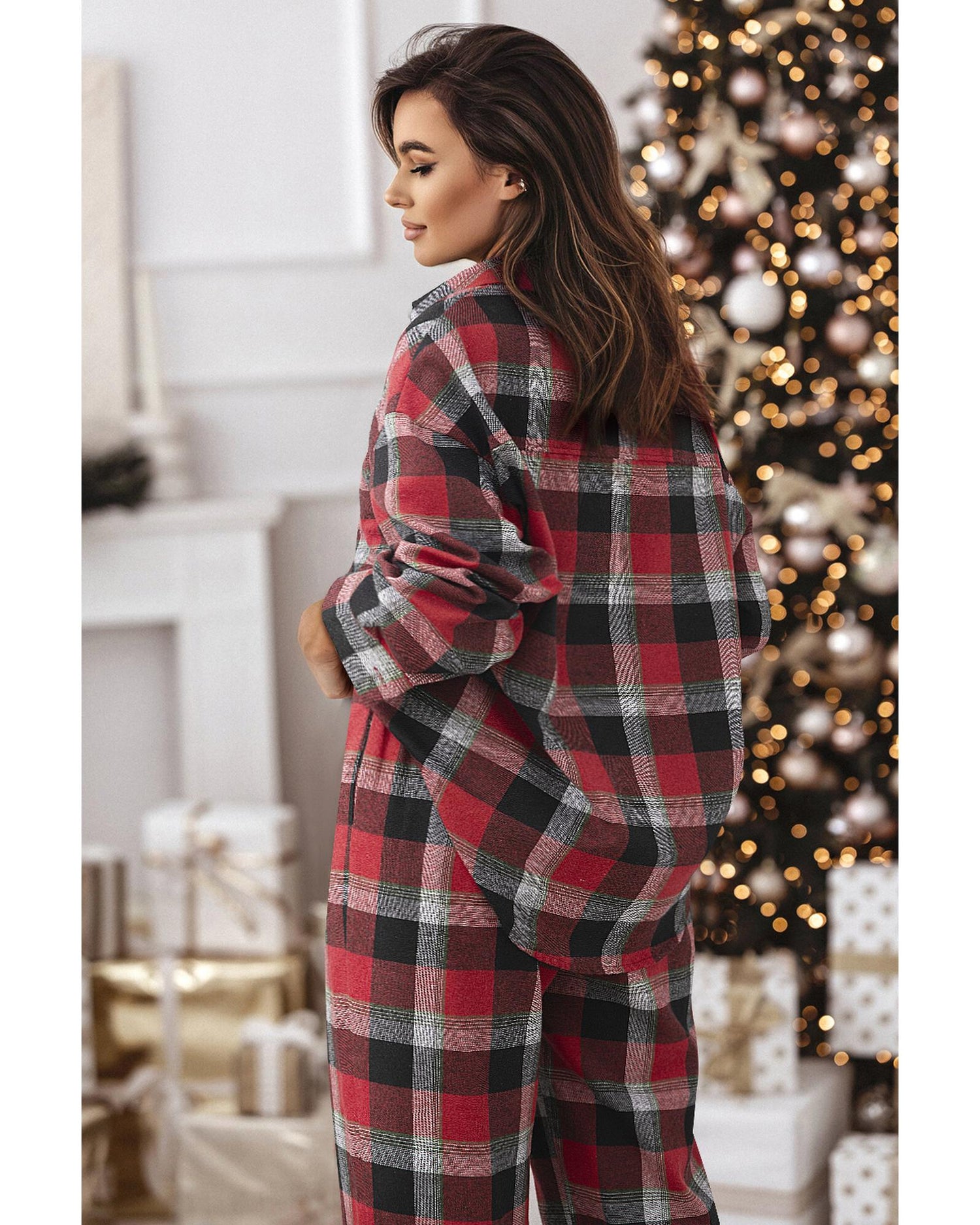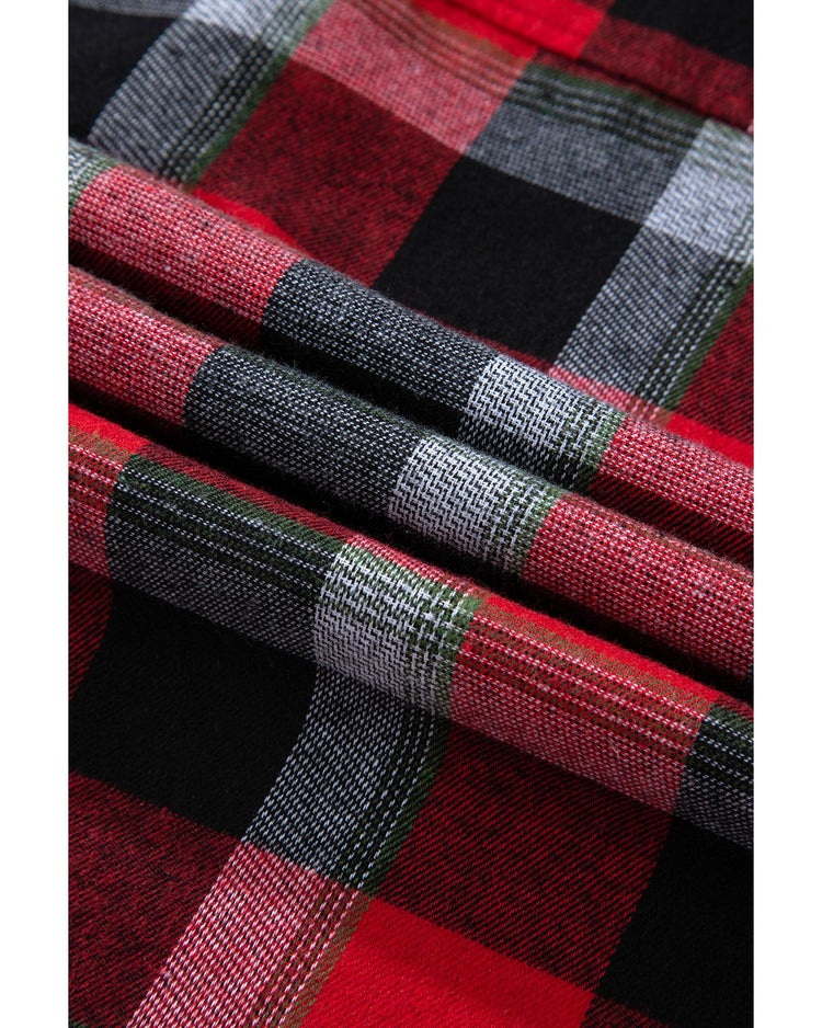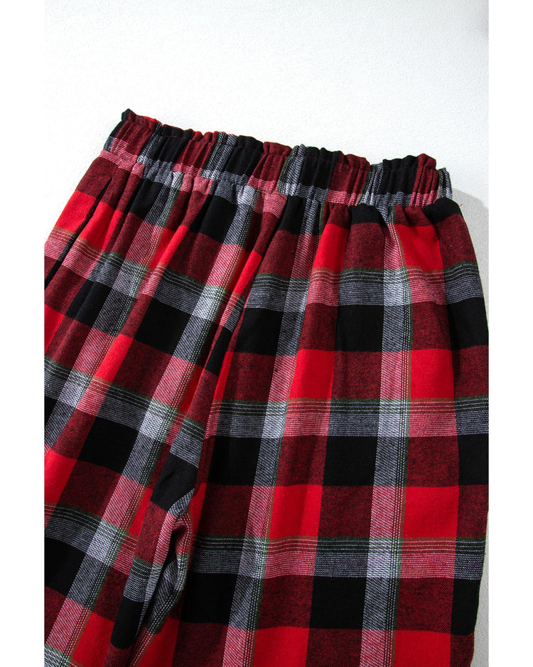 Red Christmas Checkered Pattern Loose Shirt and Pants Lounge Set - M
