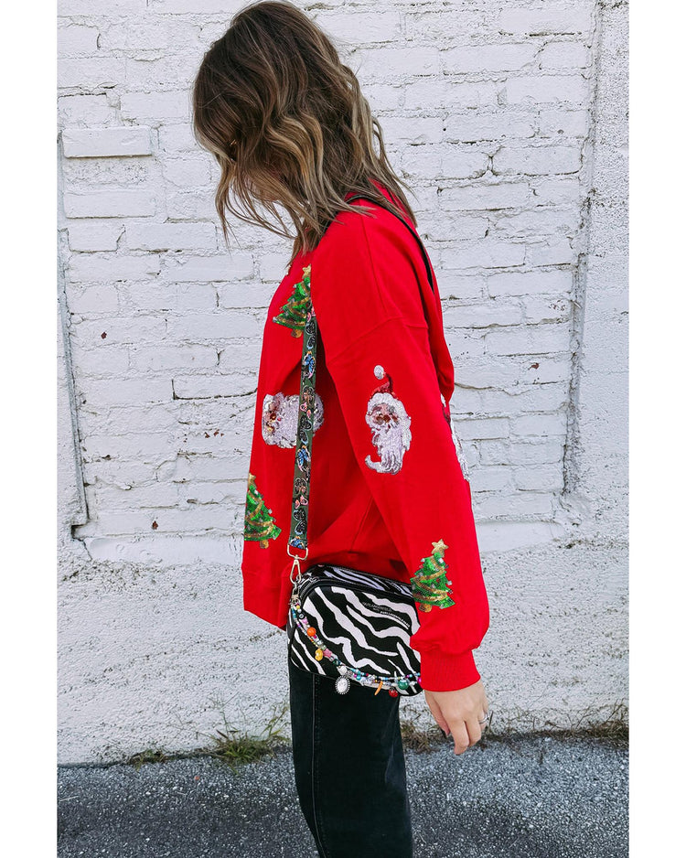• Red Santa Claus Christmas Tree Patched Pattern Drop Shoulder Sweatshirt