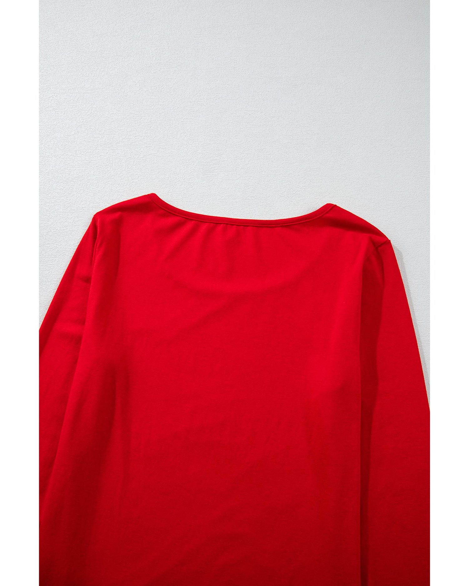 Red Solid Top and Christmas Pants Two Piece Lounge Set - XL
