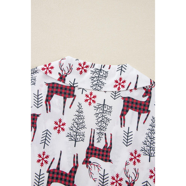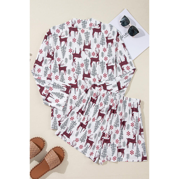 White Christmas Deer Printed Shirt and Shorts Lounge Set - M
