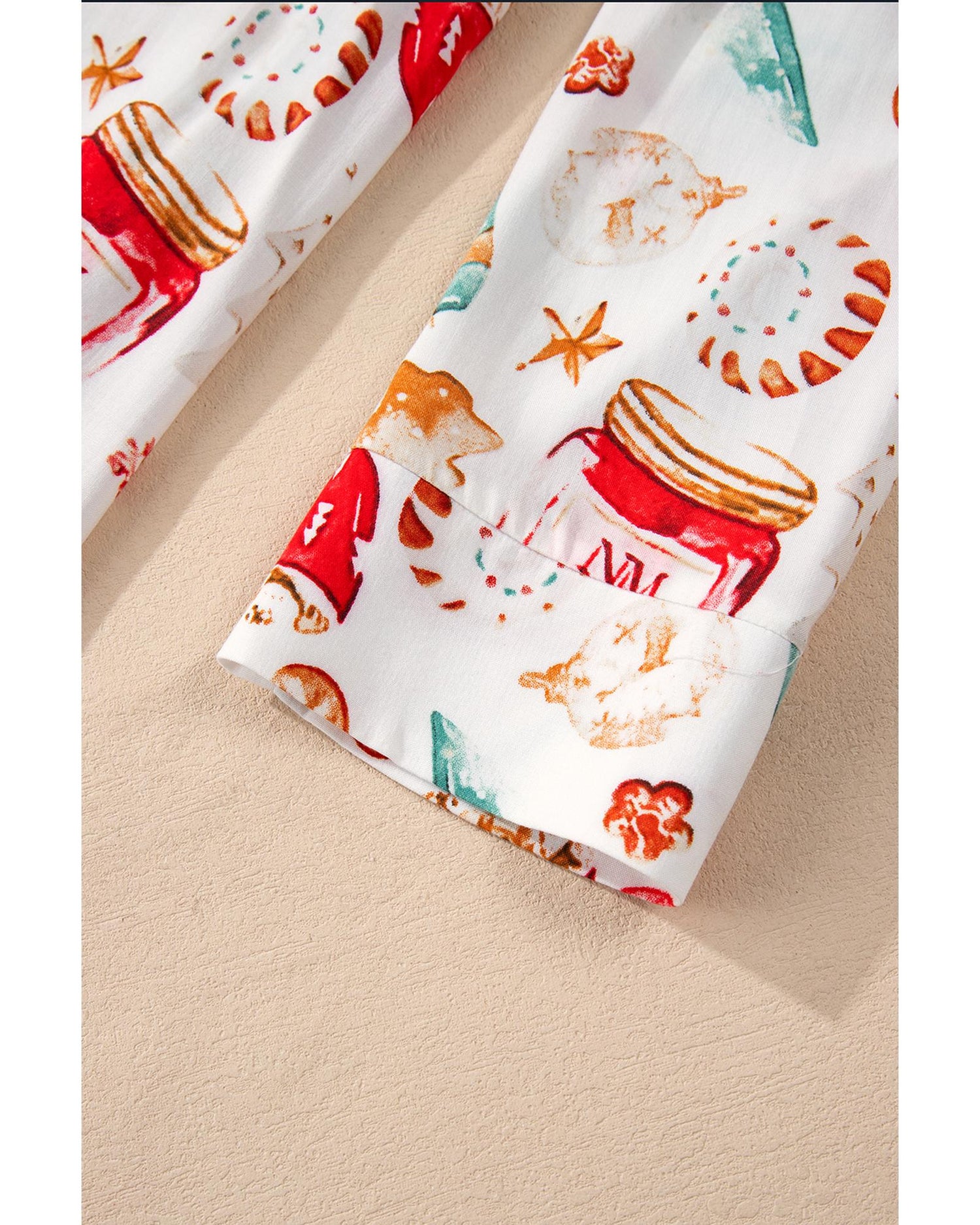 White Christmas Pattern Long Sleeve Shirt and Pants Pajama Set - M