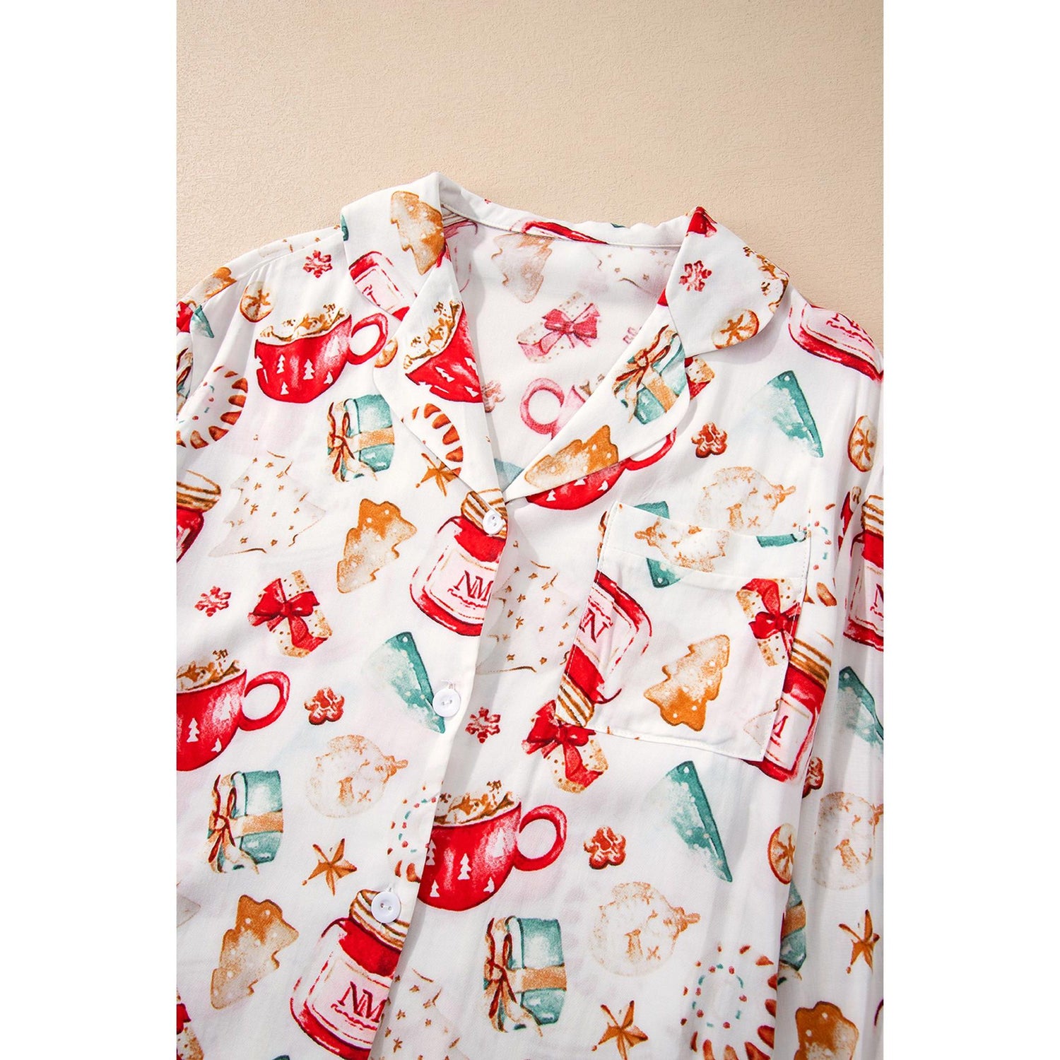 White Christmas Pattern Long Sleeve Shirt and Pants Pajama Set - XL