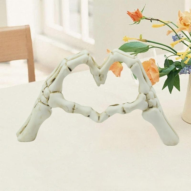 White Gothic Skeleton Hands Heart Sculpture - Macabre Love Figurine for Home & Halloween Decor