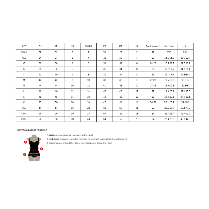 • Our styles are designed with a trendy fitted look in mind following an international size standard. For the best fit we suggest choosing one size up from your usual. Be sure to check our sizing chart to find your perfect match!