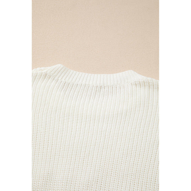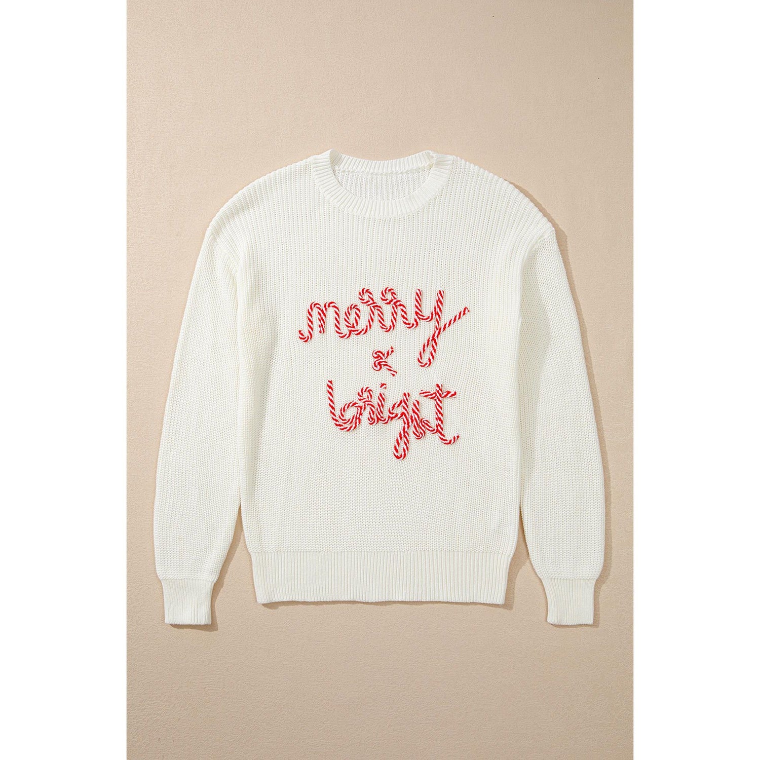 White Striped Merry Bright Letter Christmas Sweater - M