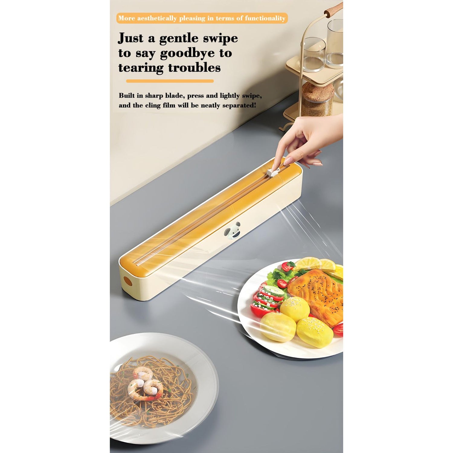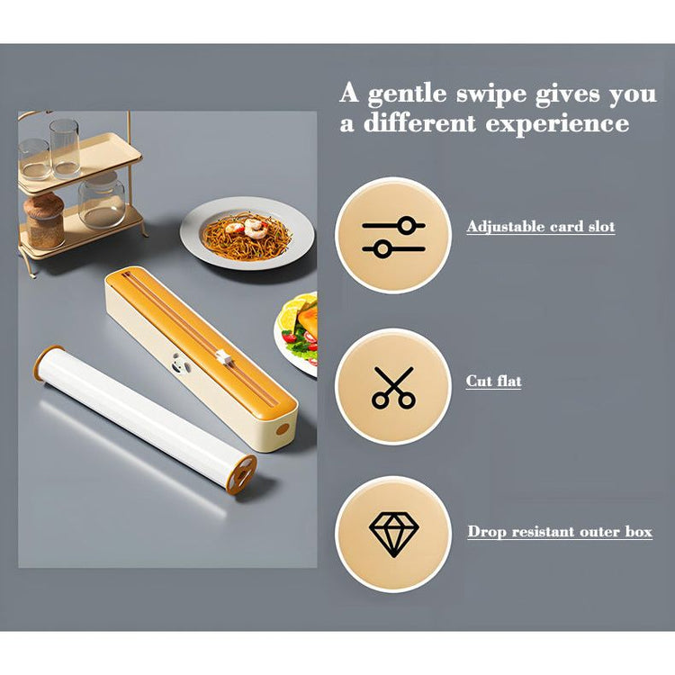 Simplify your kitchen prep with our Bidirectional Cling Film Cutter. This versatile wrap dispenser is designed for smooth and precise cutting of cling film, aluminum foil, parchment paper, and wax paper. Featuring a bidirectional sliding knife, it ensures neat cuts every time, making food storage and preparation more efficient. Made from durable ABS material, this reusable cutter is a must-have tool for any kitchen, offering both functionality and a sleek, modern design. (Cling film not included.)