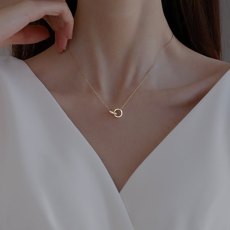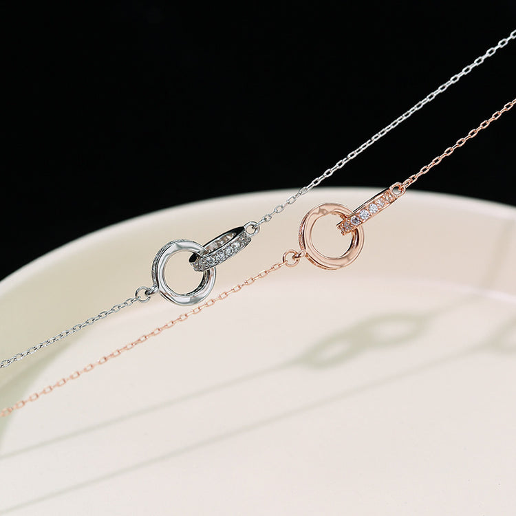 Elegant Interlocking Rings Pendant Necklace with Zirconia Accents - Copper Base, Minimalist Jewelry