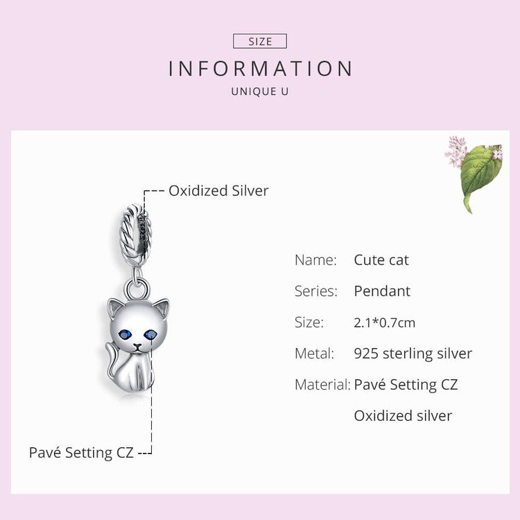 • 1 x 925 Sterling Silver Adorable Cat Pendant For Diy Bracelets Necklaces