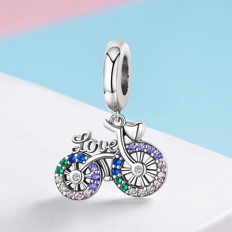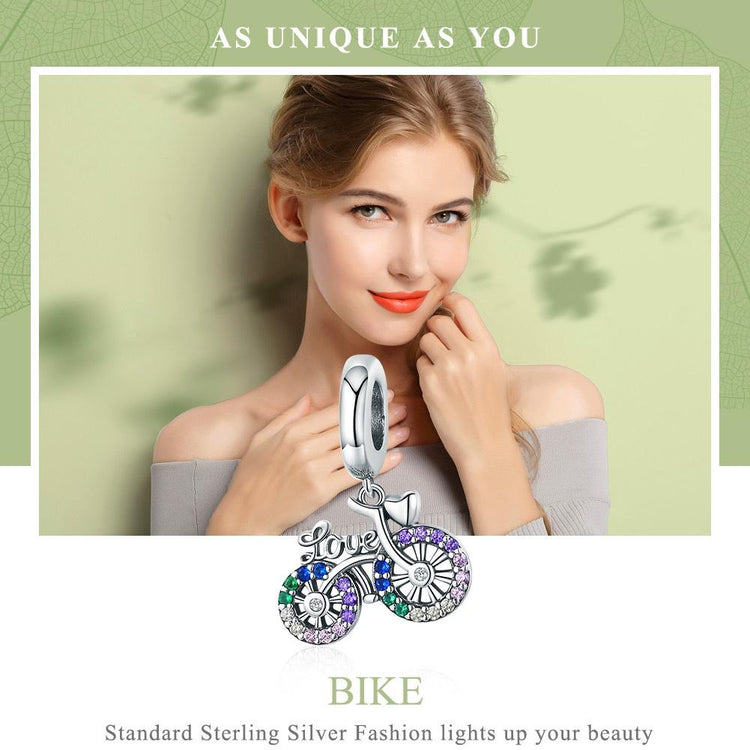 • 1 x 925 Sterling Silver Bicycle Pendant With Zircon Beads For Diy Bracelets Style - Pendant