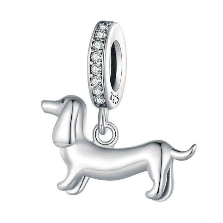 • 1 x 925 Sterling Silver Dainty Dachshund Pendant For Beaded Bracelets