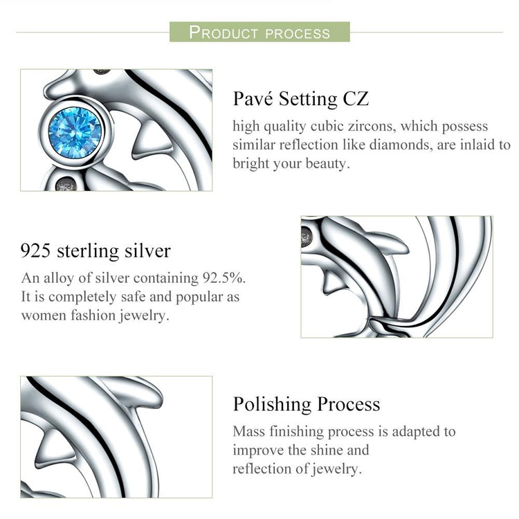 925 Sterling Silver Dolphin Bead Pendant For Diy Bracelets & Necklaces