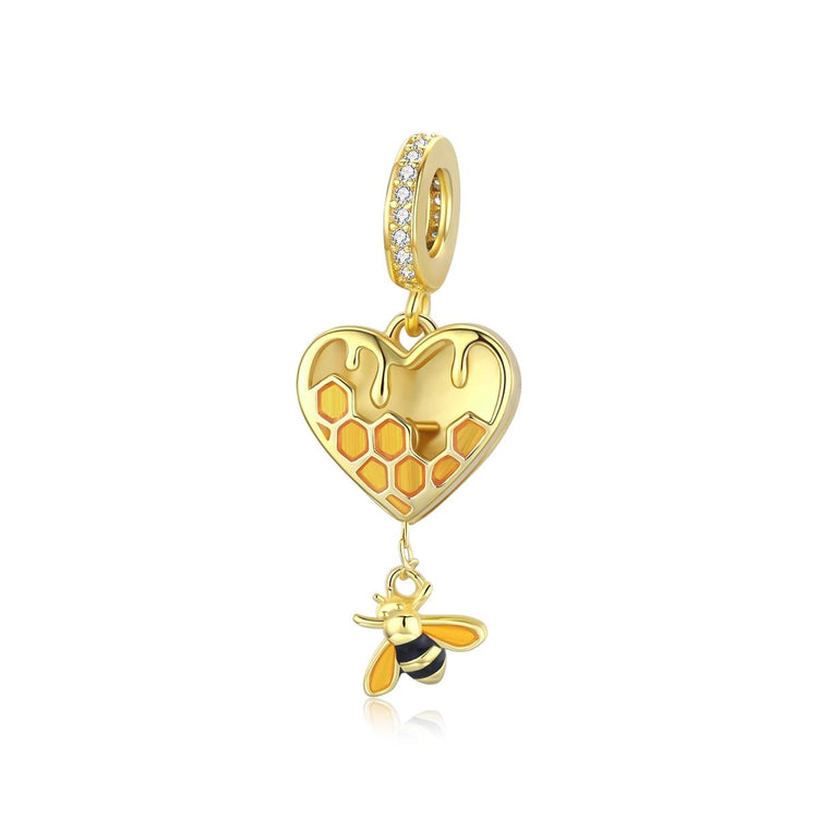 • 1 x 925 Sterling Silver Heart Honeycomb Bee Pendant For Bracelet Or Necklace