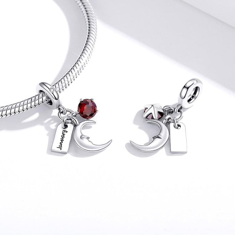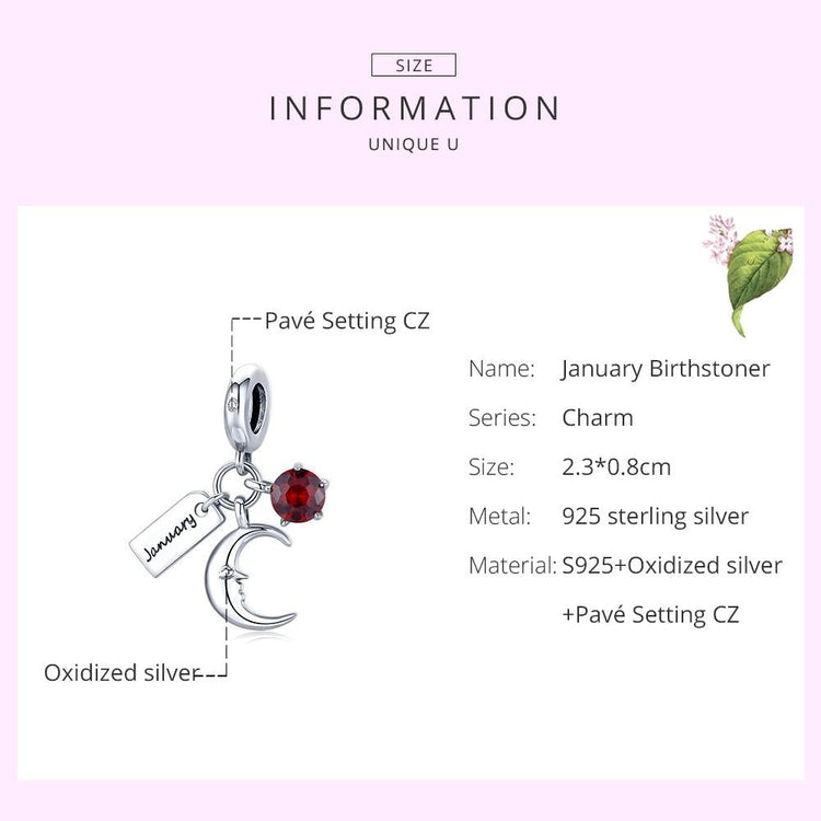 • 1 x 925 Sterling Silver January Birthstone Moon Pendant For Diy Bracelets Necklaces