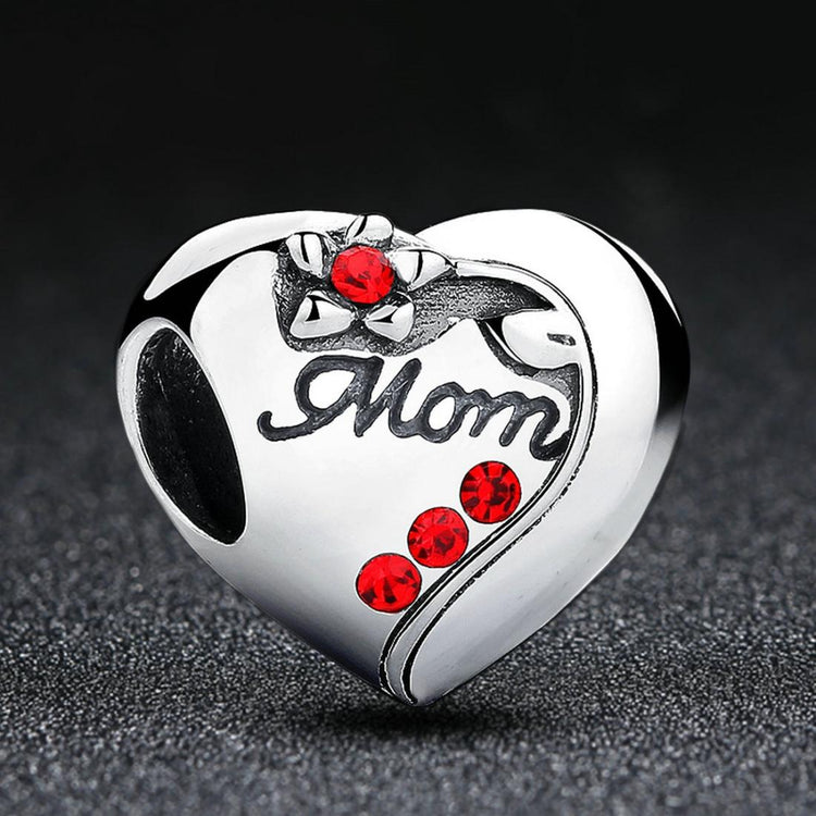 • 1 x 925 Sterling Silver Mom Heart Pendant For Diy Bracelet Or Necklace