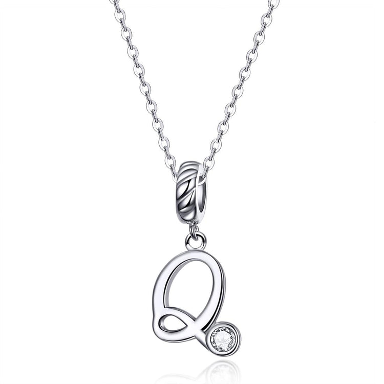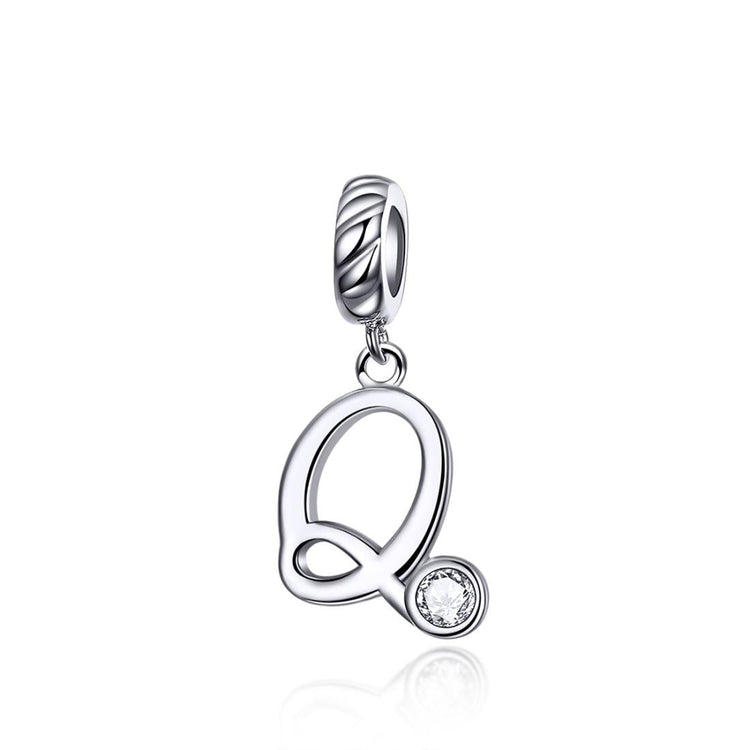 925 Sterling Silver Personalized Letter Pendant For Diy Bracelets & Necklaces Style - Q