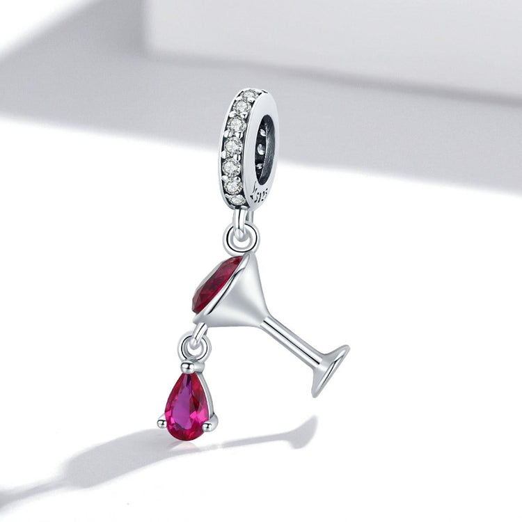 • 1 x 925 Sterling Silver Shimmering Wine Glass Pendant For Diy Bracelets Necklaces