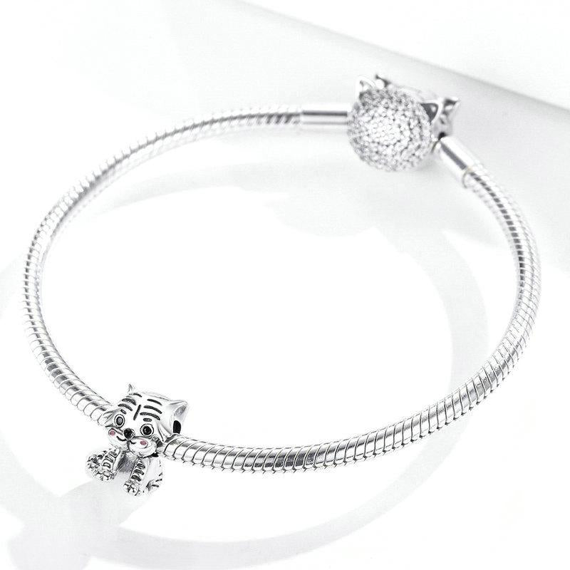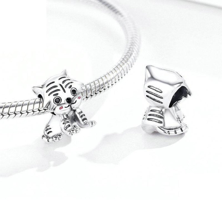 • 1 x 925 Sterling Silver Tiger Bead Pendant For Diy Bracelets Necklaces