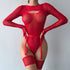 Alluring Transparent Bodysuit Open Crotch Teddy Nightgown For Women - Red - S