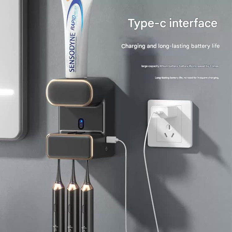 Automatic Toothpaste Dispenser with UVC Toothbrush Sterilizer & Holder - Wall Mounted, Rechargeable
