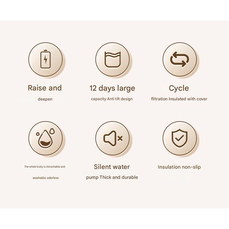 • Intermittent Dispensing Mode: Option to dispense water automatically every 30 minutes (Intermittent Mode), ideal for quieter environments or less active pets.