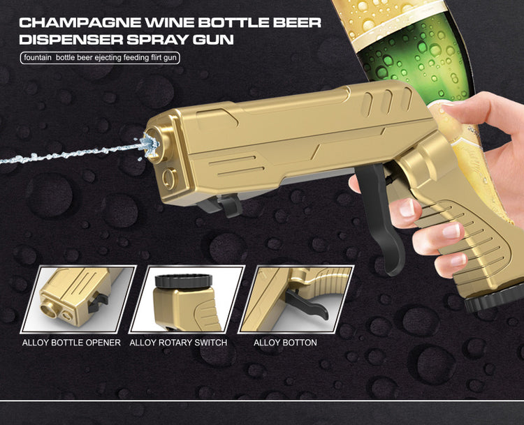 Gold Champagne & Beer Spray Gun - Ultimate Party Starter & Drink Dispenser with Bottle Opener