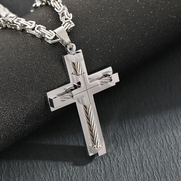 Embrace a blend of modern design and timeless symbolism with this striking Layered Cross Pendant Necklace. The creative and innovative design reinterprets the classic cross with a sophisticated, multi-layered look featuring a unique textured inlay. This piece isn't just a visual statement; it's an expression of a unique temperament that comes from within. Paired with a bold Byzantine link chain, this necklace offers a substantial feel and a distinctive trendy attitude. Crafted from durable stainless steel, it's designed for longevity and to be a standout piece in any collection, perfect for expressing a romantic, free-spirited, retro, or rebellious personality.