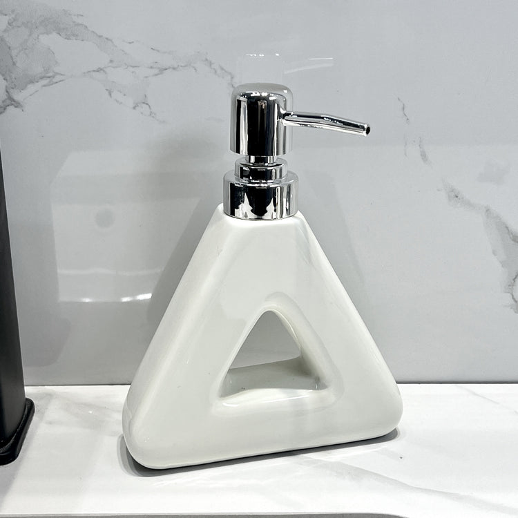 Modern Ceramic Soap & Lotion Dispenser - Unique Geometric Designs, 300ml Capacity(Triangular lotion bottle, milky white)