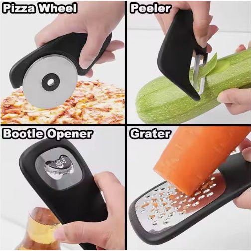 Stackable Kitchen Tool Set - Multi-Function Grater, Herb Cutter, Garlic Press, Can Opener, Cheese Grater, Pizza Cutter & Spice Set