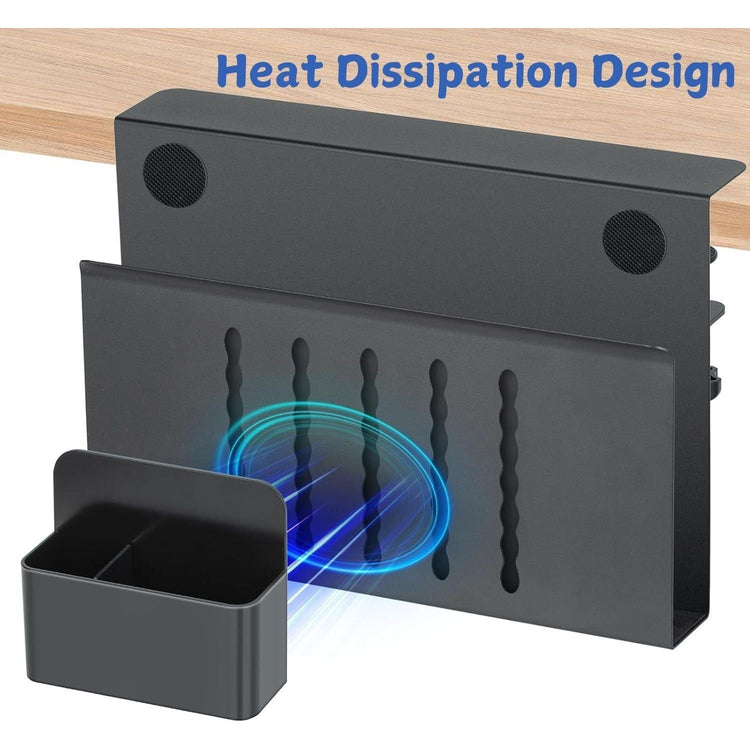 Under Desk Side Laptop Holder Storage with No Drill Cable Management Tray and Pen Storage for Office and Home