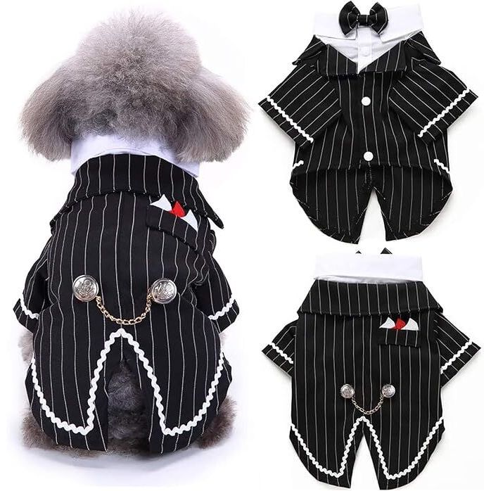 pet products Dog Cat Tuxedo Suit with Bow Tie - Formal Black & White Striped Pet Costume Shirt, Elegant Wedding Outfit Birthday Party Attire for Maltese Dachshund Yorkie Puppies Shih Tzu Small Medium Dogs and cats