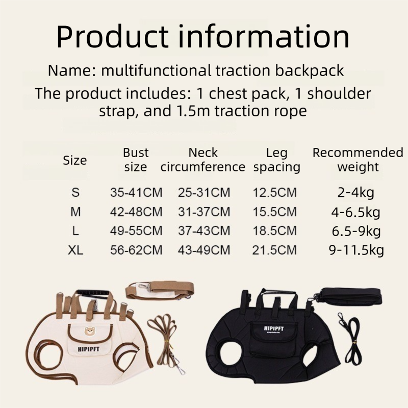 Beige 4-in-1 Multi-Functional Pet Carrier Bag with Detachable Strap & 1.5M Traction Rope - Lightweight Breathable Travel Sling for Cats & Dogs - Sizes L(Up to 9kg)