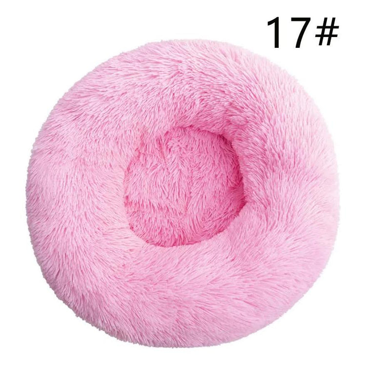 Calming Donut Pet Bed - Give your furry friend the ultimate comfort with our soft faux fur and plush cushioning round bed. Perfect for small dogs and cats, this anti-anxiety bed provides joint relief, security, and warmth, helping pets to relax and sleep better. The raised rim offers excellent head and neck support, while the non-slip bottom ensures stability. Available in Pink , this cozy bed is machine washable and easy to maintain, making it a stylish addition to any pet-loving home.