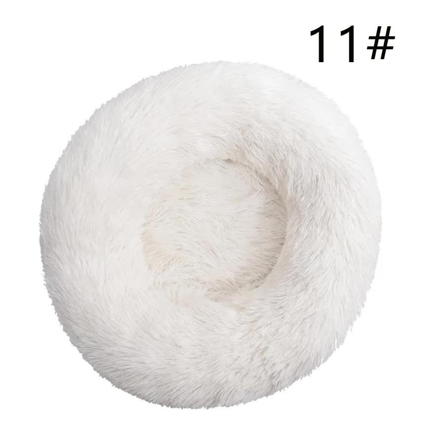 Calming Donut Pet Bed - Give your furry friend the ultimate comfort with our soft faux fur and plush cushioning round bed. Perfect for small dogs and cats, this anti-anxiety bed provides joint relief, security, and warmth, helping pets to relax and sleep better. The raised rim offers excellent head and neck support, while the non-slip bottom ensures stability. Available in white , this cozy bed is machine washable and easy to maintain, making it a stylish addition to any pet-loving home.