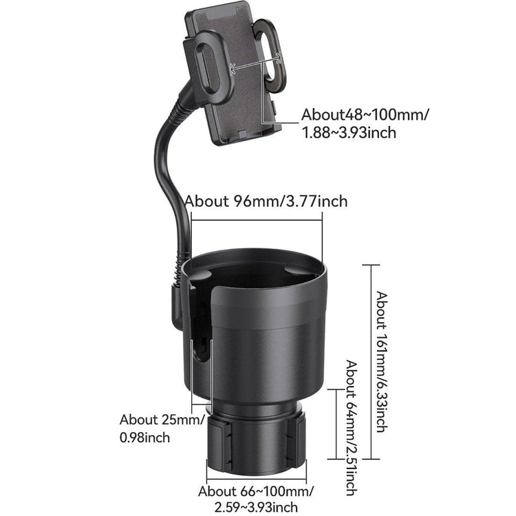 Adjustable Base: Expands to fit most car cup holders, providing a snug and stable fit.