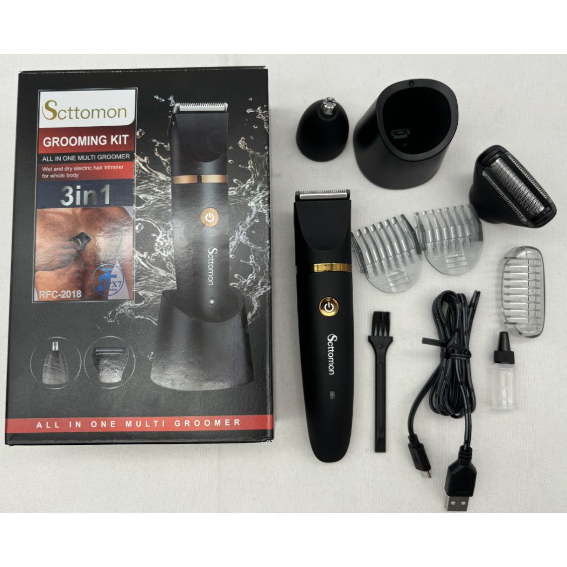 3-in-1 Men's Electric Body Groomer & Hair Clipper Kit - Waterproof, USB-C Rechargeable with Charging Dock