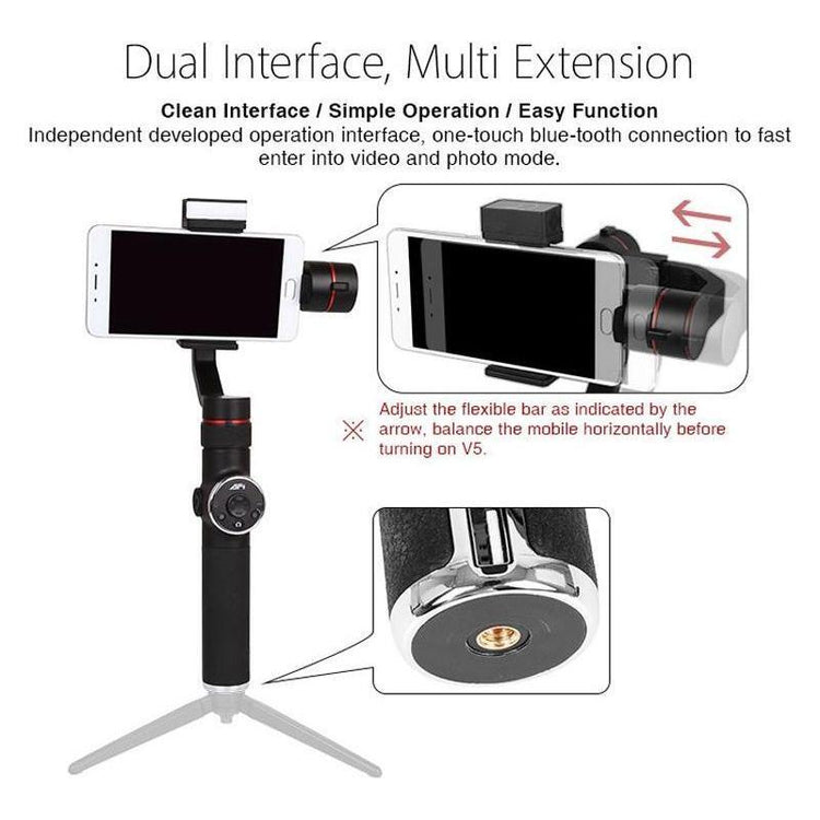 • 1 x V5 Smooth 3-Axis Handheld Aluminum Brushless Gimbal Stabilizer With Tripod Mount Fill Light For Smartphones Within 6 Inch Support Face Tracking Black