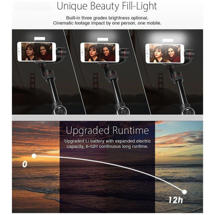 3-Axis Gimbal Stabilizer With Tripod Mount & Fill Light For Smartphones - Black