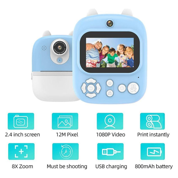 • 1 x 1200W Pixel 2.4 Inch Display Children Print Instant Camera 32G Card Reader Blue