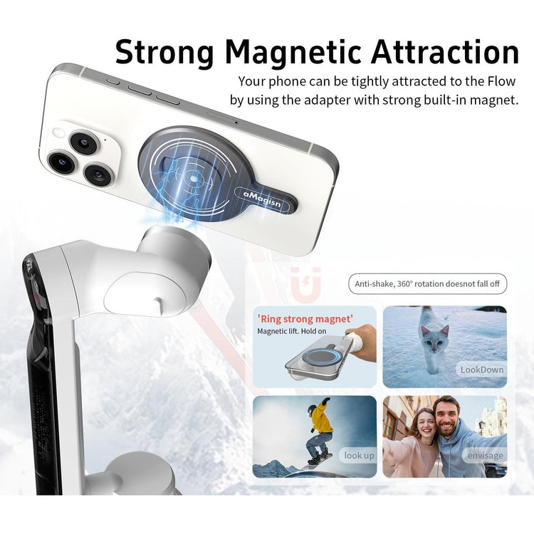 • Built-in powerful magnet, strong magnetic force, tightly adsorption of the phone and Flow